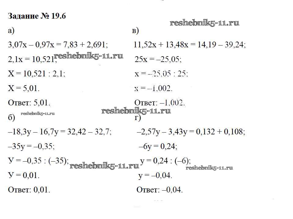 Готовая домашняя работа с ответами по Математике за 6 класс Зубарева Рабочая тетрадь Часть 1, 2 Мнемозина 2016 ФГОС - §19. Решение уравнений 6