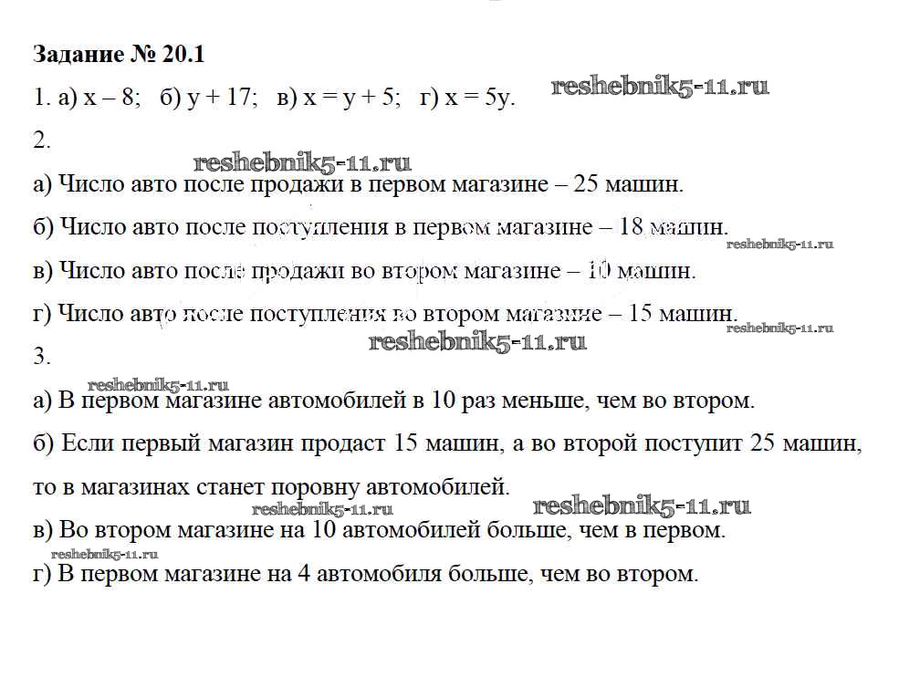 Готовая домашняя работа с ответами по Математике за 6 класс Зубарева Рабочая тетрадь Часть 1, 2 Мнемозина 2016 ФГОС - §20. Решение задач на составление уравнений 1