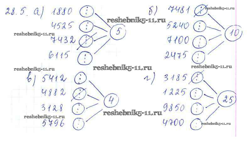 Готовая домашняя работа с ответами по Математике за 6 класс Зубарева Рабочая тетрадь Часть 1, 2 Мнемозина 2016 ФГОС - §28. Признаки делимости на 2, 5, 10, 4 и 25 5