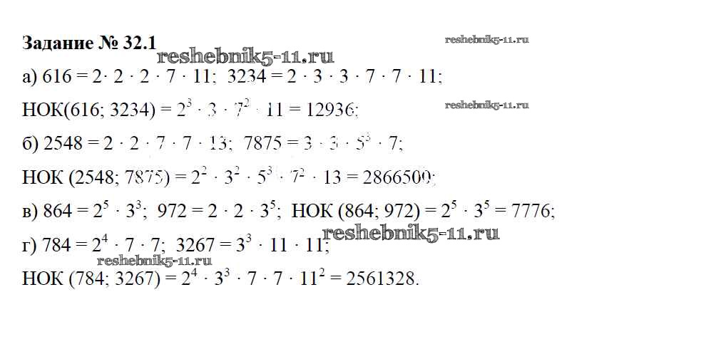 Готовая домашняя работа с ответами по Математике за 6 класс Зубарева Рабочая тетрадь Часть 1, 2 Мнемозина 2016 ФГОС - §32. Взаимно простые числа. Признак делимости на произведение. Наименьшее общее кратное 1