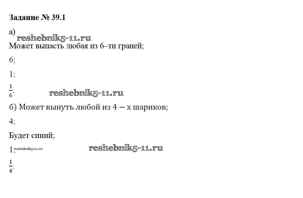 Готовая домашняя работа с ответами по Математике за 6 класс Зубарева Рабочая тетрадь Часть 1, 2 Мнемозина 2016 ФГОС - §39. Первое знакомство с подсчетом вероятности 1