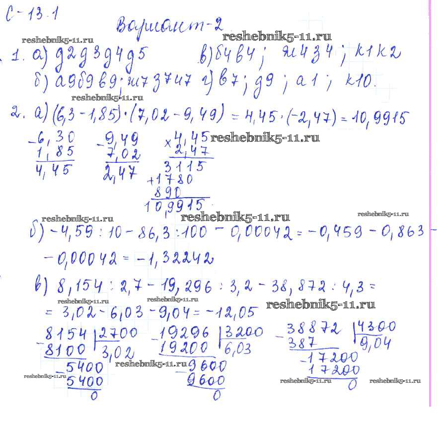 Готовая домашняя работа с ответами по Математике за 6 класс Зубарева, Лепешонкова, Мильштейн Самостоятельные работы УМК Мнемозина 2020 ФГОС - 1. Варианты 2