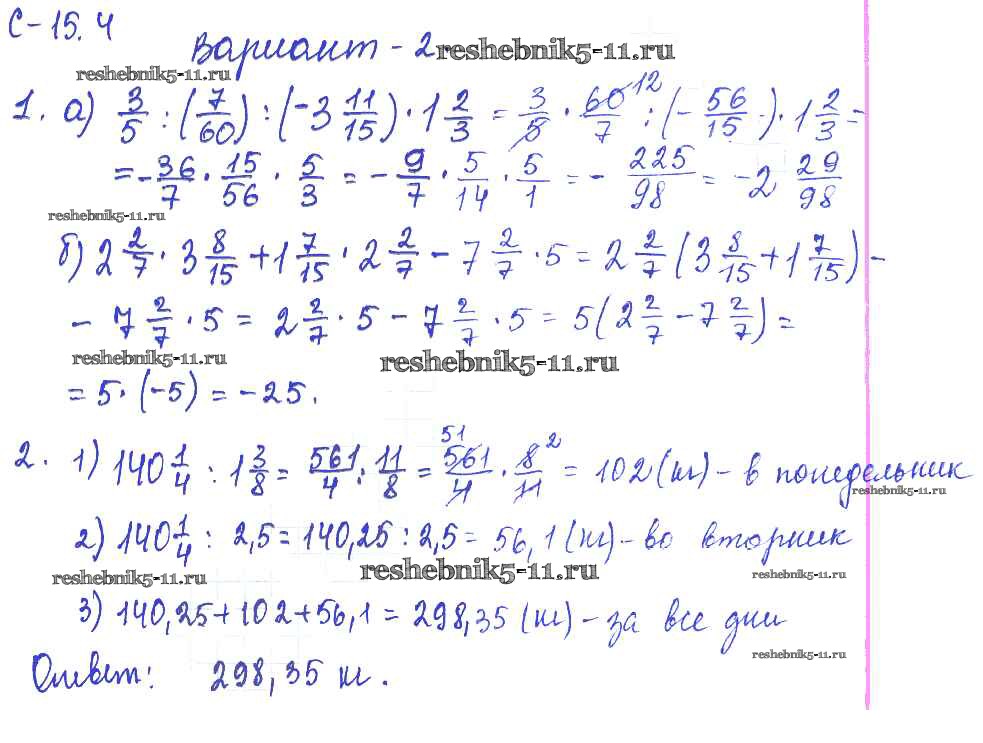 Готовая домашняя работа с ответами по Математике за 6 класс Зубарева, Лепешонкова, Мильштейн Самостоятельные работы УМК Мнемозина 2020 ФГОС - 4. Варианты 2