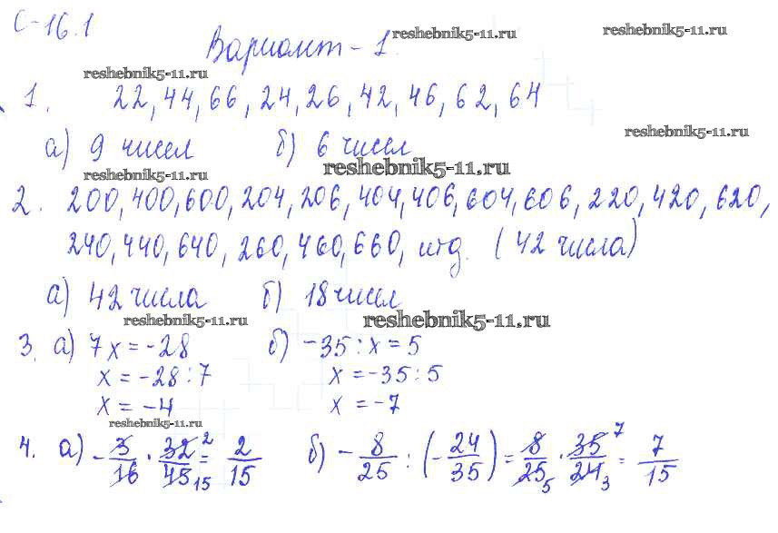 Математика за 6 класс Зубарева Самостоятельные работы УМК Мнемозина 1. вариант 1