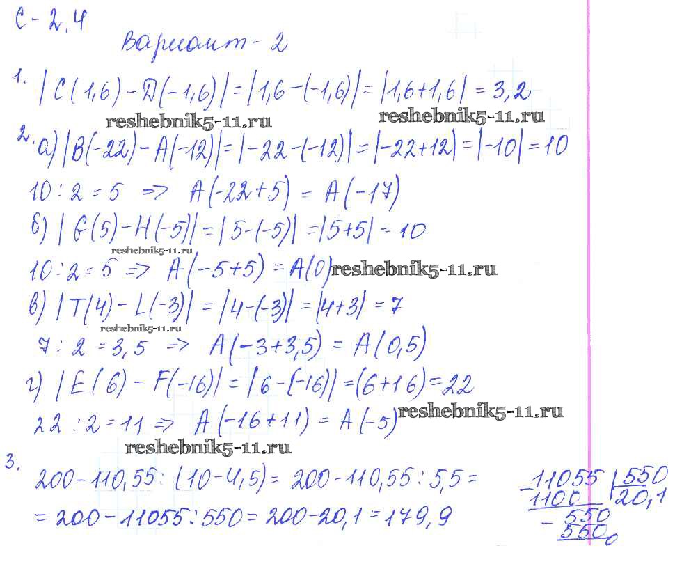 Готовая домашняя работа с ответами по Математике за 6 класс Зубарева, Лепешонкова, Мильштейн Самостоятельные работы УМК Мнемозина 2020 ФГОС - 4. Варианты 2