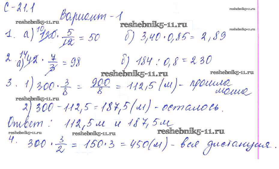 Математика за 6 класс Зубарева Самостоятельные работы УМК Мнемозина 1. вариант 1