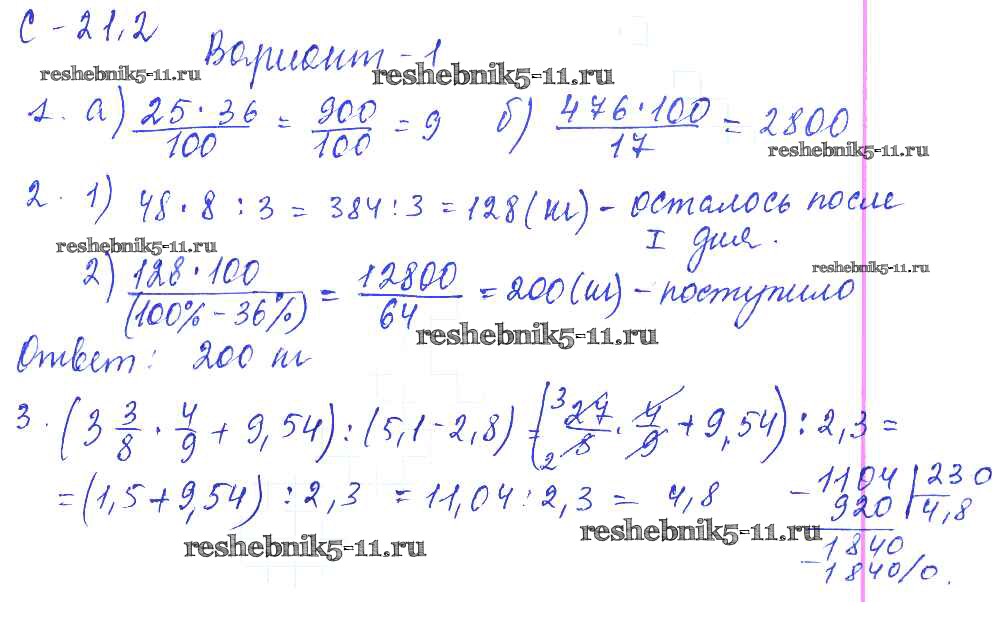 Математика за 6 класс Зубарева Самостоятельные работы УМК Мнемозина 2. вариант 1
