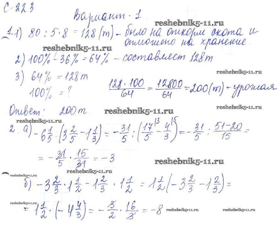 Готовая домашняя работа с ответами по Математике за 6 класс Зубарева, Лепешонкова, Мильштейн Самостоятельные работы УМК Мнемозина 2020 ФГОС - 3. Варианты 1