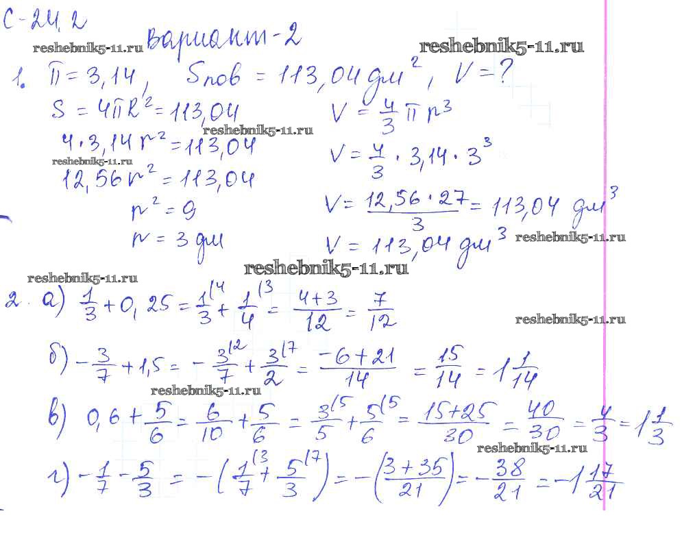 Готовая домашняя работа с ответами по Математике за 6 класс Зубарева, Лепешонкова, Мильштейн Самостоятельные работы УМК Мнемозина 2020 ФГОС - 2. Варианты 2