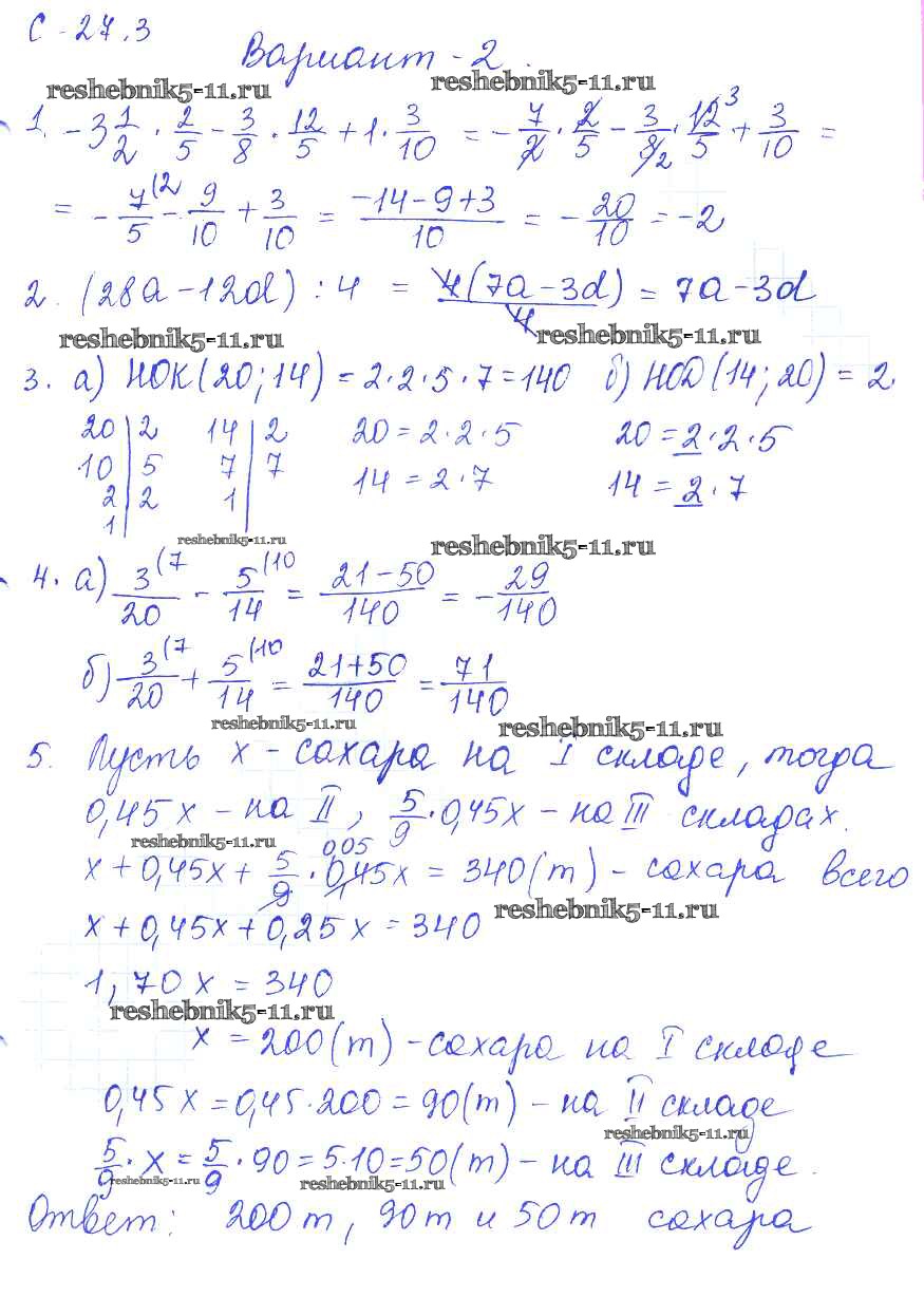 Математика за 6 класс Зубарева Самостоятельные работы УМК Мнемозина 3. вариант 2