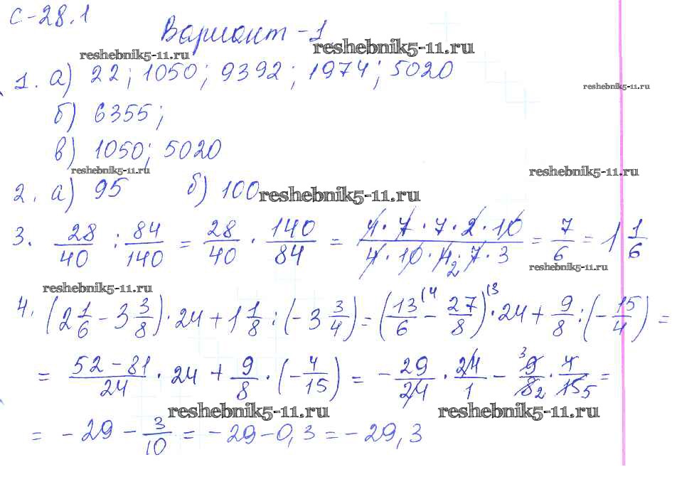 Готовая домашняя работа с ответами по Математике за 6 класс Зубарева, Лепешонкова, Мильштейн Самостоятельные работы УМК Мнемозина 2020 ФГОС - 1. Варианты 1