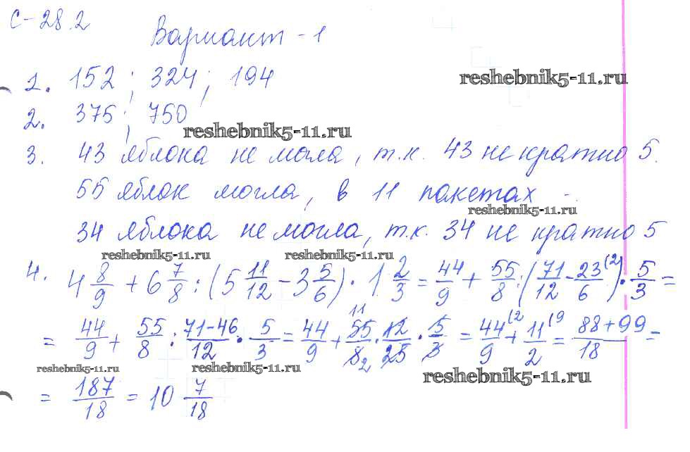 Готовая домашняя работа с ответами по Математике за 6 класс Зубарева, Лепешонкова, Мильштейн Самостоятельные работы УМК Мнемозина 2020 ФГОС - 2. Варианты 1