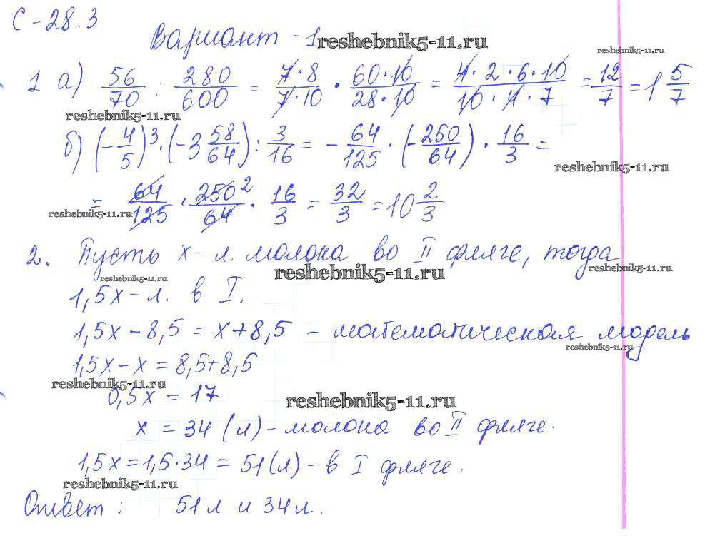Готовая домашняя работа с ответами по Математике за 6 класс Зубарева, Лепешонкова, Мильштейн Самостоятельные работы УМК Мнемозина 2020 ФГОС - 3. Варианты 1