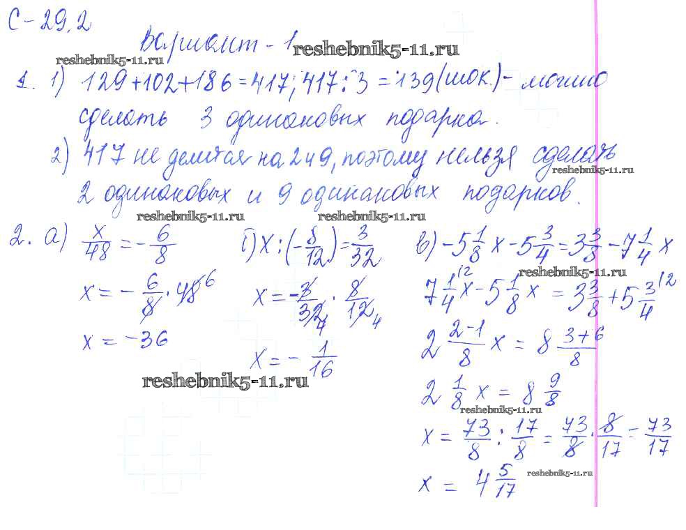 Готовая домашняя работа с ответами по Математике за 6 класс Зубарева, Лепешонкова, Мильштейн Самостоятельные работы УМК Мнемозина 2020 ФГОС - 2. Варианты 1