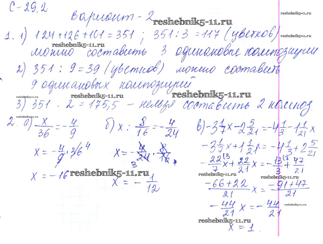 Готовая домашняя работа с ответами по Математике за 6 класс Зубарева, Лепешонкова, Мильштейн Самостоятельные работы УМК Мнемозина 2020 ФГОС - 2. Варианты 2