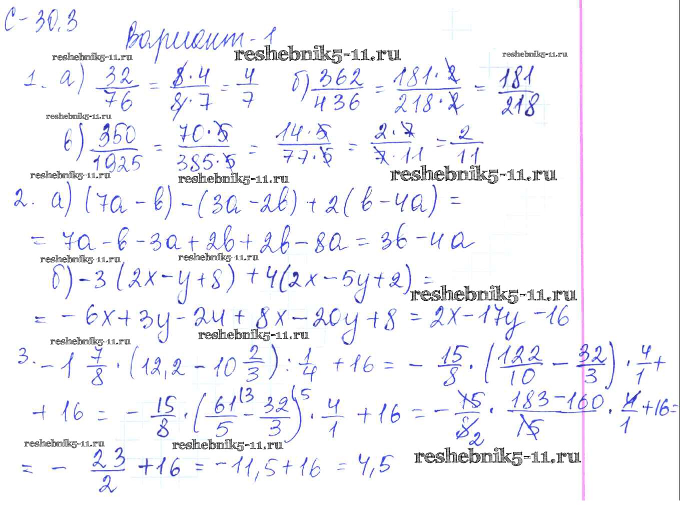 Математика за 6 класс Зубарева Самостоятельные работы УМК Мнемозина 3. вариант 1