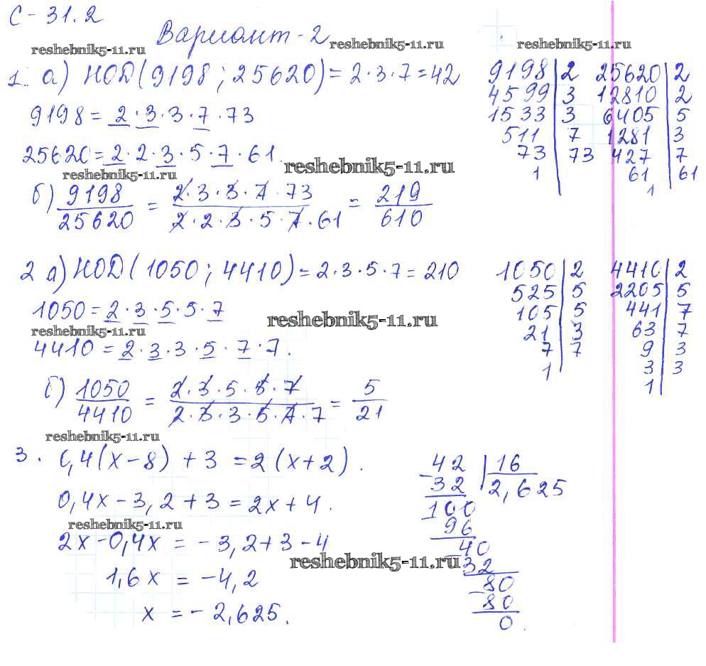 Математика за 6 класс Зубарева Самостоятельные работы УМК Мнемозина 2. вариант 2
