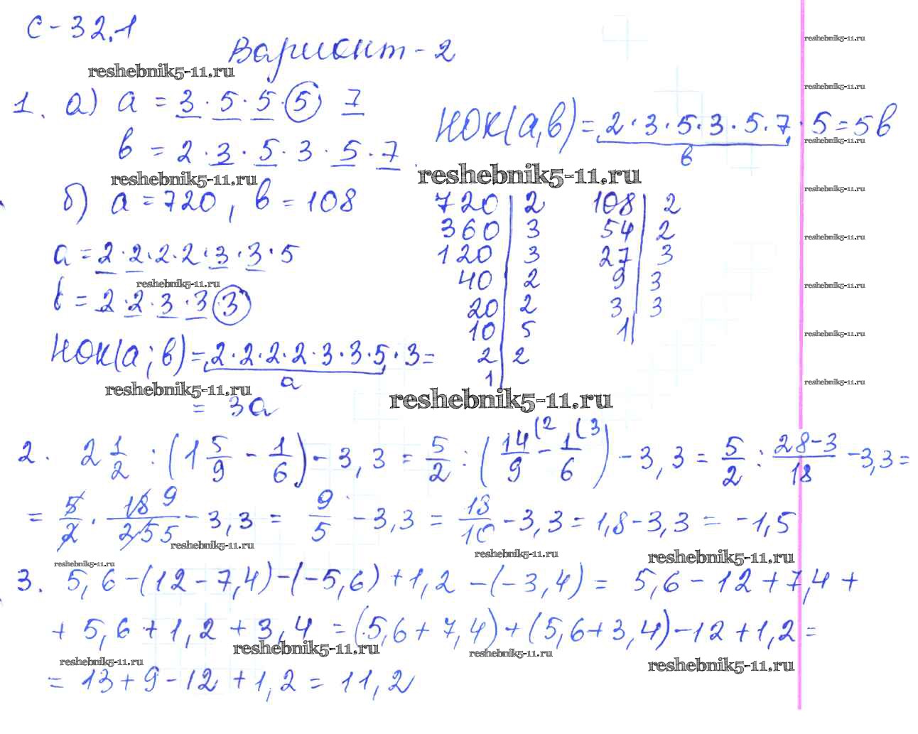 Готовая домашняя работа с ответами по Математике за 6 класс Зубарева, Лепешонкова, Мильштейн Самостоятельные работы УМК Мнемозина 2020 ФГОС - 1. Варианты 2