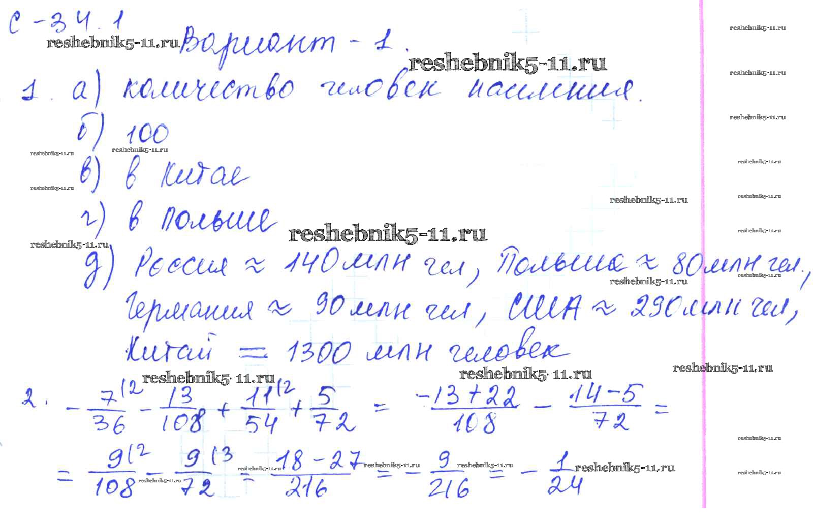 Готовая домашняя работа с ответами по Математике за 6 класс Зубарева, Лепешонкова, Мильштейн Самостоятельные работы УМК Мнемозина 2020 ФГОС - 1. Варианты 1