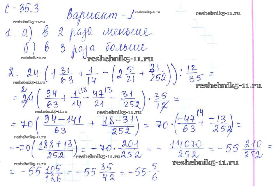 Математика за 6 класс Зубарева Самостоятельные работы УМК Мнемозина 3. вариант 1