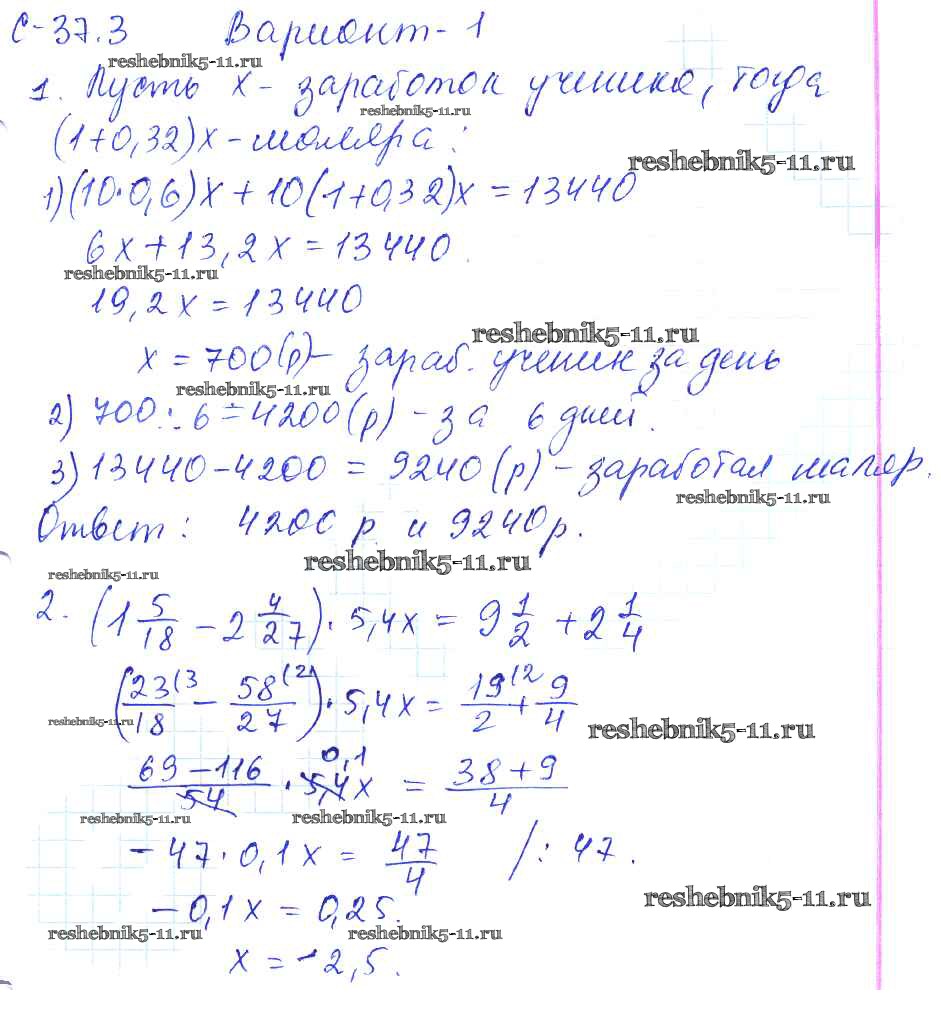 Готовая домашняя работа с ответами по Математике за 6 класс Зубарева, Лепешонкова, Мильштейн Самостоятельные работы УМК Мнемозина 2020 ФГОС - 3. Варианты 1