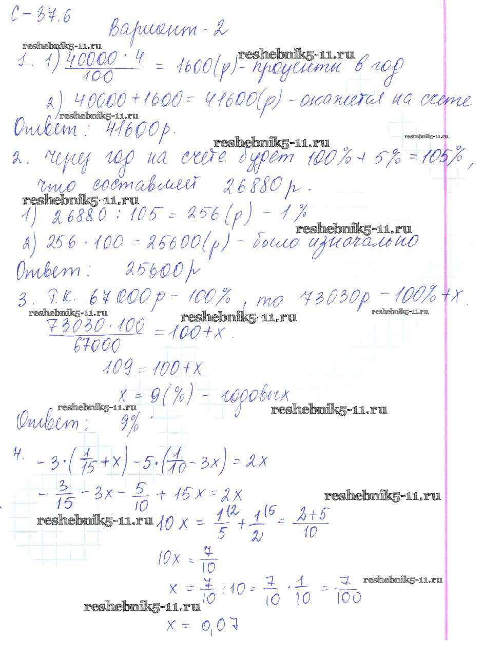 Готовая домашняя работа с ответами по Математике за 6 класс Зубарева, Лепешонкова, Мильштейн Самостоятельные работы УМК Мнемозина 2020 ФГОС - 6. Варианты 2