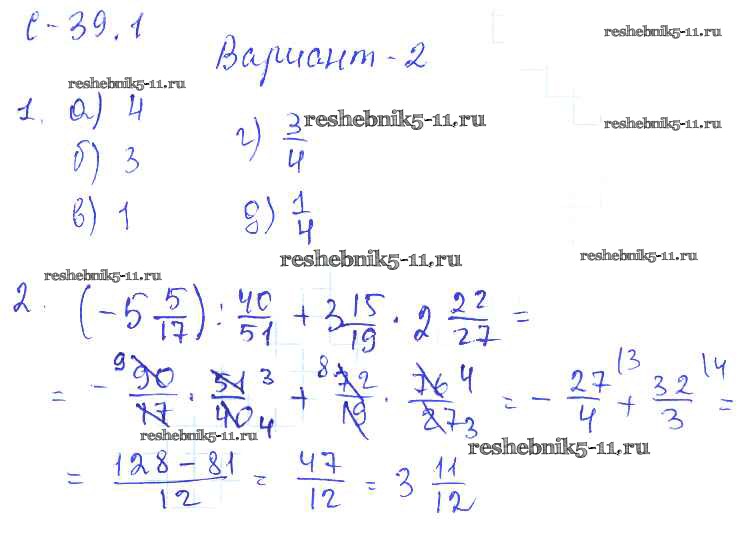 Математика за 6 класс Зубарева Самостоятельные работы УМК Мнемозина 3. вариант 2