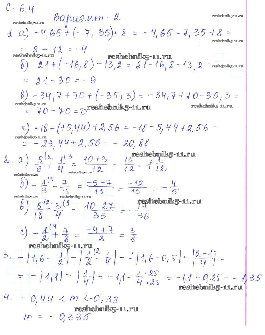 Готовая домашняя работа с ответами по Математике за 6 класс Зубарева, Лепешонкова, Мильштейн Самостоятельные работы УМК Мнемозина 2020 ФГОС - 4. Варианты 2