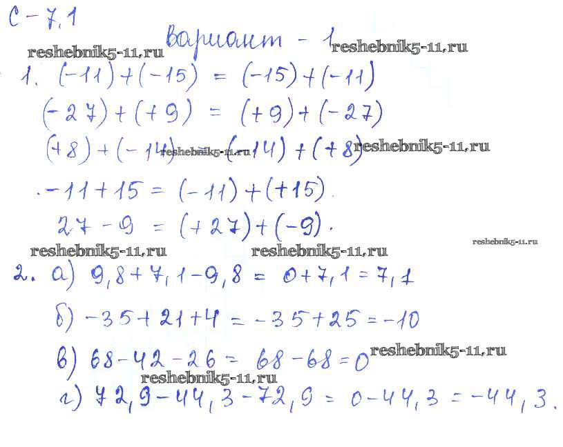 Готовая домашняя работа с ответами по Математике за 6 класс Зубарева, Лепешонкова, Мильштейн Самостоятельные работы УМК Мнемозина 2020 ФГОС - 1. Варианты 1