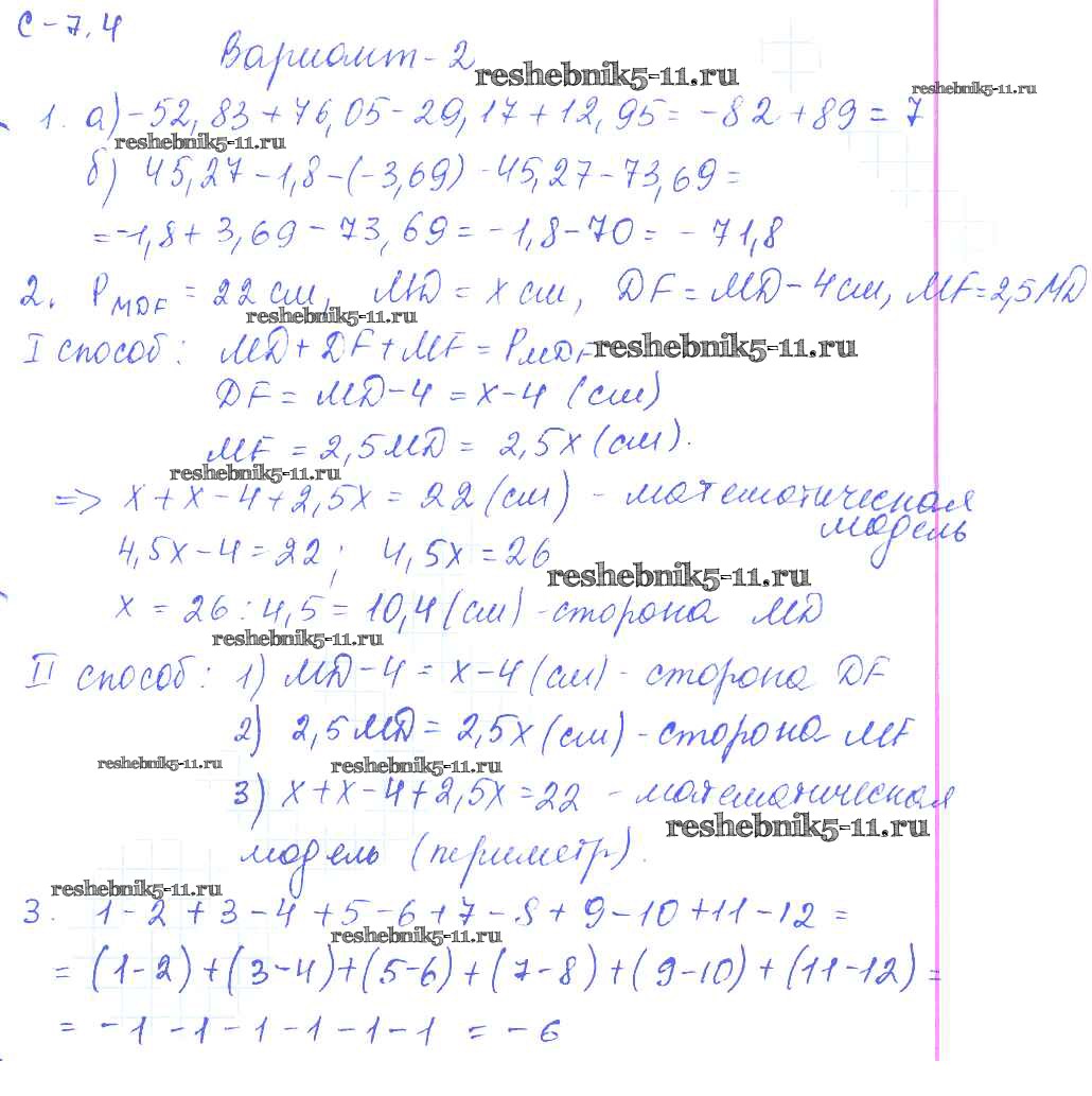 Готовая домашняя работа с ответами по Математике за 6 класс Зубарева, Лепешонкова, Мильштейн Самостоятельные работы УМК Мнемозина 2020 ФГОС - 4. Варианты 2