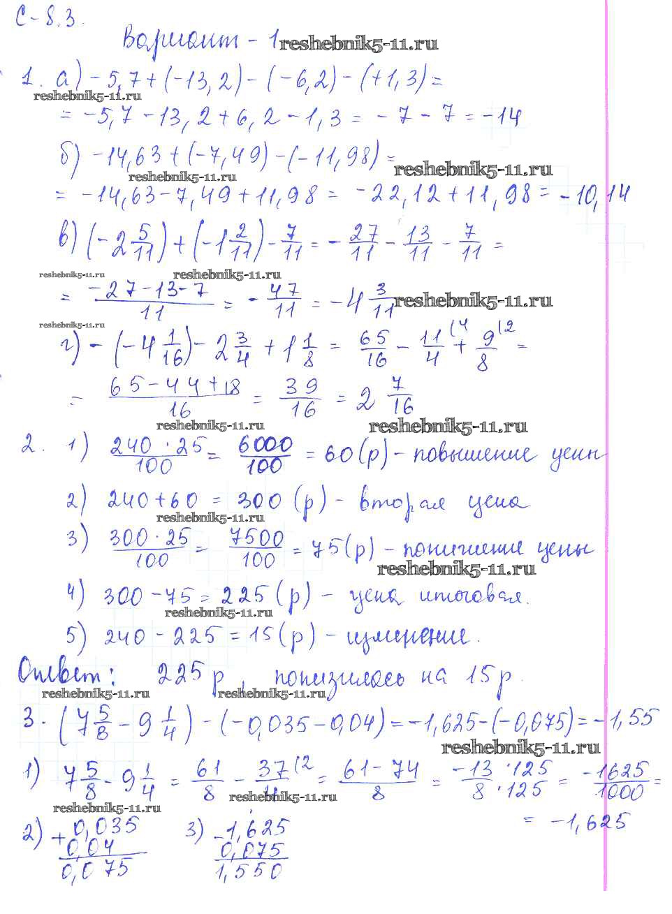 Готовая домашняя работа с ответами по Математике за 6 класс Зубарева, Лепешонкова, Мильштейн Самостоятельные работы УМК Мнемозина 2020 ФГОС - 3. Варианты 1