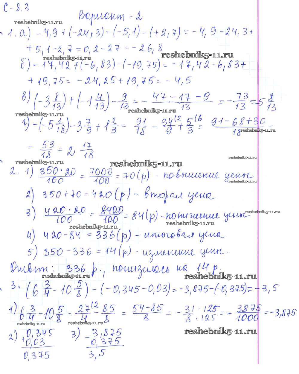 Готовая домашняя работа с ответами по Математике за 6 класс Зубарева, Лепешонкова, Мильштейн Самостоятельные работы УМК Мнемозина 2020 ФГОС - 3. Варианты 2