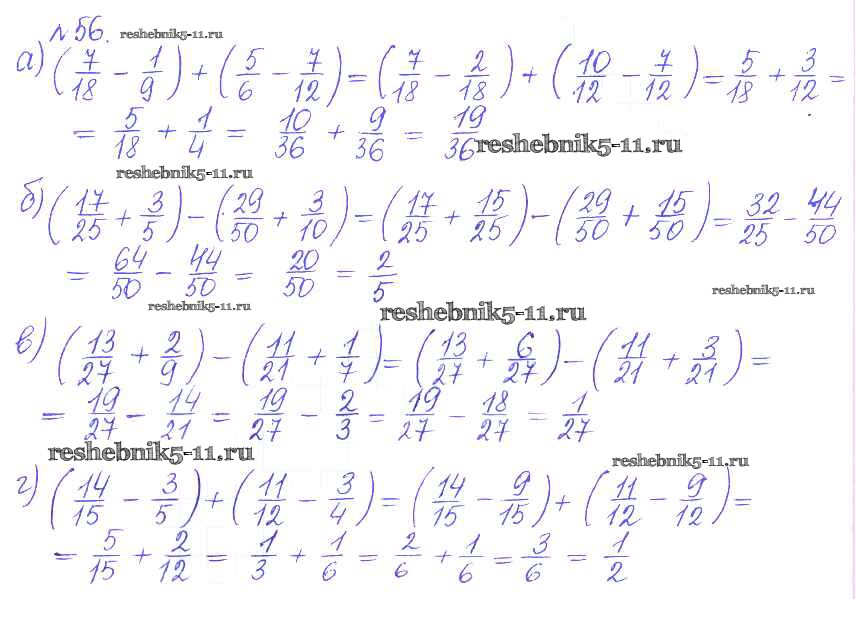 Готовая домашняя работа с ответами по Математике за 6 класс Гамбарин, Зубарева Сборник задач и упражнений Мнемозина 2011 ФГОС - Повторение 56