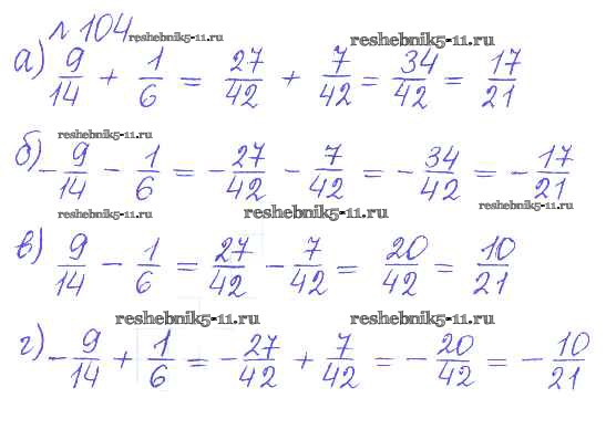 Готовая домашняя работа с ответами по Математике за 6 класс Гамбарин, Зубарева Сборник задач и упражнений Мнемозина 2011 ФГОС - Упражнения 104