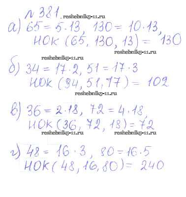 Готовая домашняя работа с ответами по Математике за 6 класс Гамбарин, Зубарева Сборник задач и упражнений Мнемозина 2011 ФГОС - Упражнения 381
