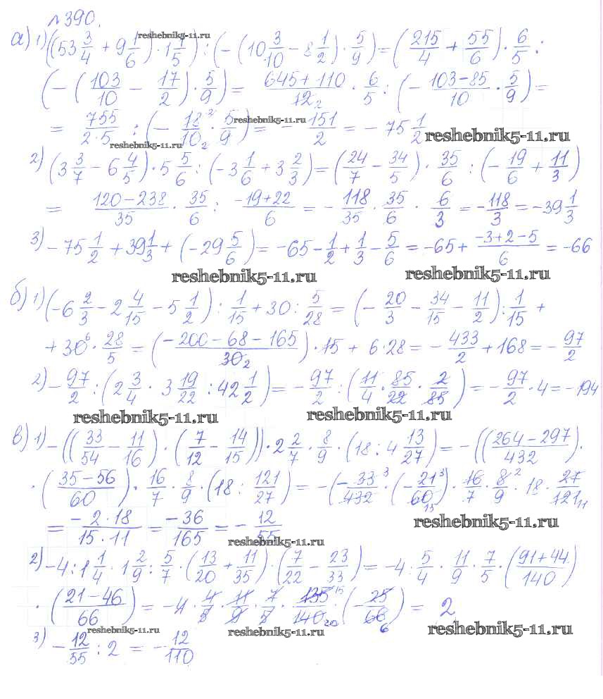 Готовая домашняя работа с ответами по Математике за 6 класс Гамбарин, Зубарева Сборник задач и упражнений Мнемозина 2011 ФГОС - Упражнения 390