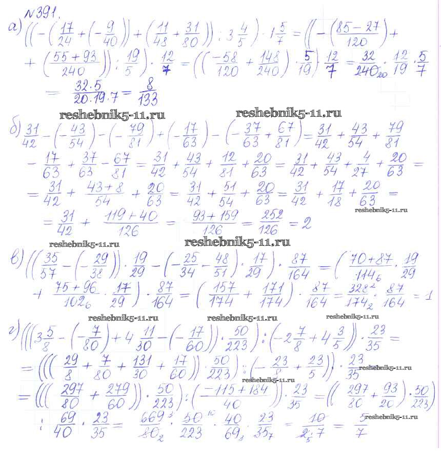 Готовая домашняя работа с ответами по Математике за 6 класс Гамбарин, Зубарева Сборник задач и упражнений Мнемозина 2011 ФГОС - Упражнения 391