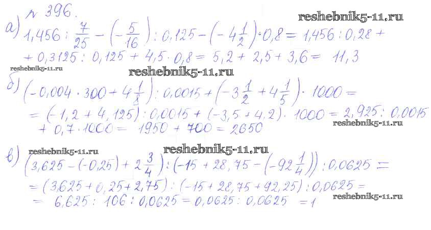 Готовая домашняя работа с ответами по Математике за 6 класс Гамбарин, Зубарева Сборник задач и упражнений Мнемозина 2011 ФГОС - Упражнения 396
