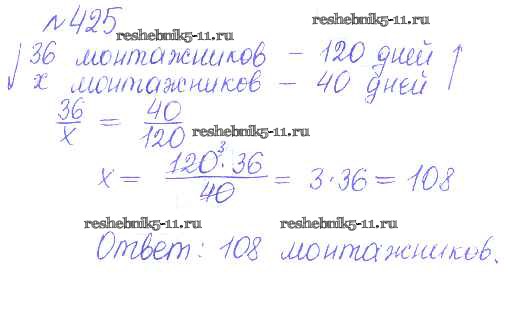 Готовая домашняя работа с ответами по Математике за 6 класс Гамбарин, Зубарева Сборник задач и упражнений Мнемозина 2011 ФГОС - Упражнения 425