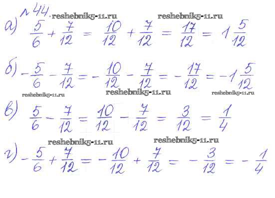 Готовая домашняя работа с ответами по Математике за 6 класс Гамбарин, Зубарева Сборник задач и упражнений Мнемозина 2011 ФГОС - Упражнения 44
