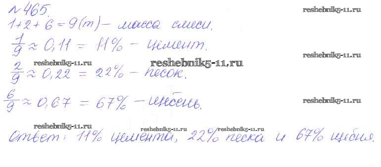 Готовая домашняя работа с ответами по Математике за 6 класс Гамбарин, Зубарева Сборник задач и упражнений Мнемозина 2011 ФГОС - Упражнения 465