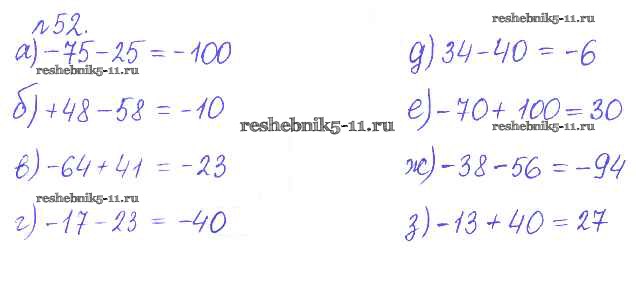 Готовая домашняя работа с ответами по Математике за 6 класс Гамбарин, Зубарева Сборник задач и упражнений Мнемозина 2011 ФГОС - Упражнения 52