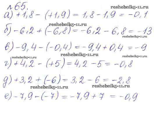 Готовая домашняя работа с ответами по Математике за 6 класс Гамбарин, Зубарева Сборник задач и упражнений Мнемозина 2011 ФГОС - Упражнения 65