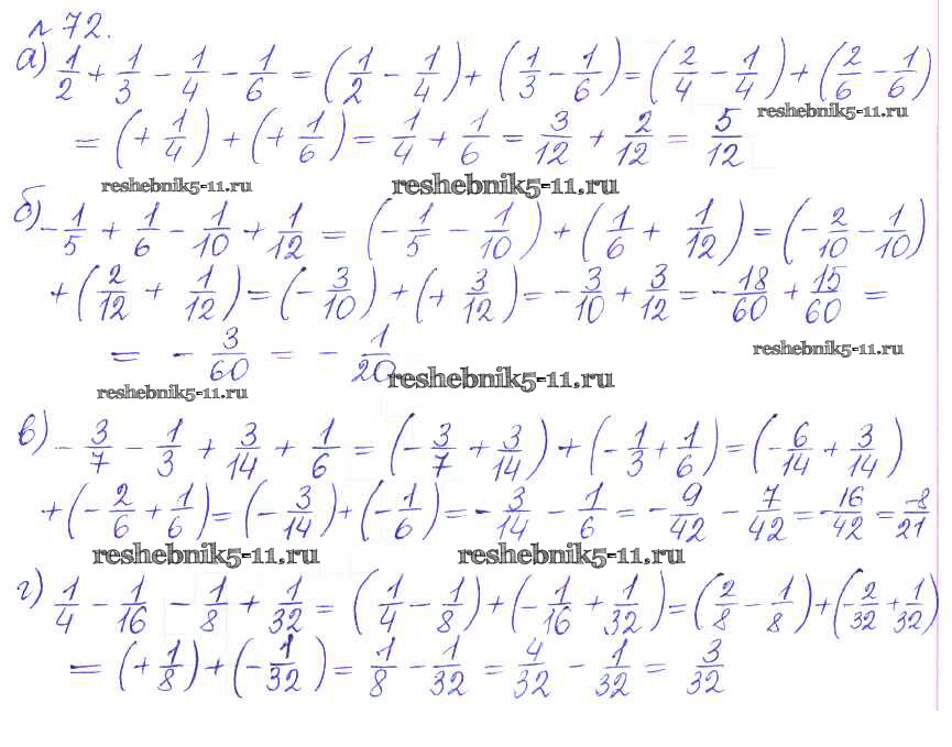 Готовая домашняя работа с ответами по Математике за 6 класс Гамбарин, Зубарева Сборник задач и упражнений Мнемозина 2011 ФГОС - Упражнения 72
