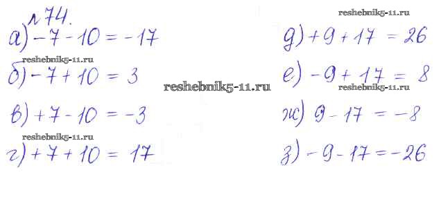 Готовая домашняя работа с ответами по Математике за 6 класс Гамбарин, Зубарева Сборник задач и упражнений Мнемозина 2011 ФГОС - Упражнения 74