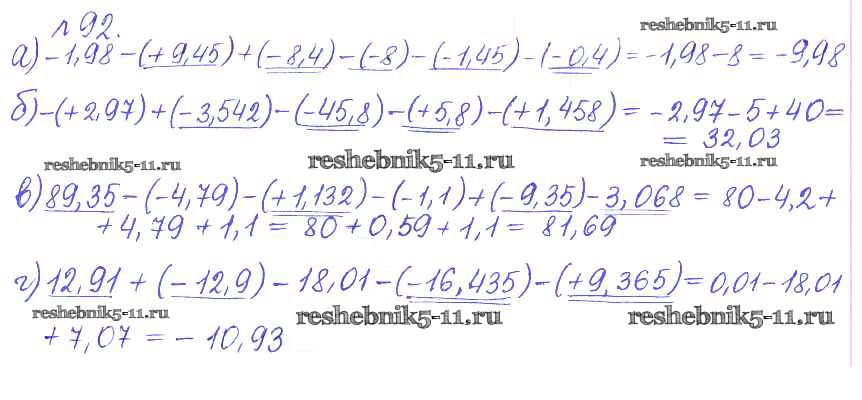 Готовая домашняя работа с ответами по Математике за 6 класс Гамбарин, Зубарева Сборник задач и упражнений Мнемозина 2011 ФГОС - Упражнения 92