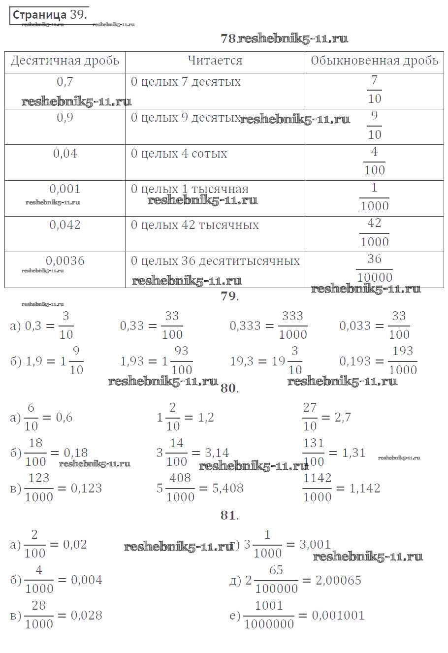 Готовая домашняя работа с ответами по Математике за 6 класс Бунимович, Кузнецова, Минаева Тетрадь-тренажер Сферы Просвещение 2013 ФГОС - Страницы 39