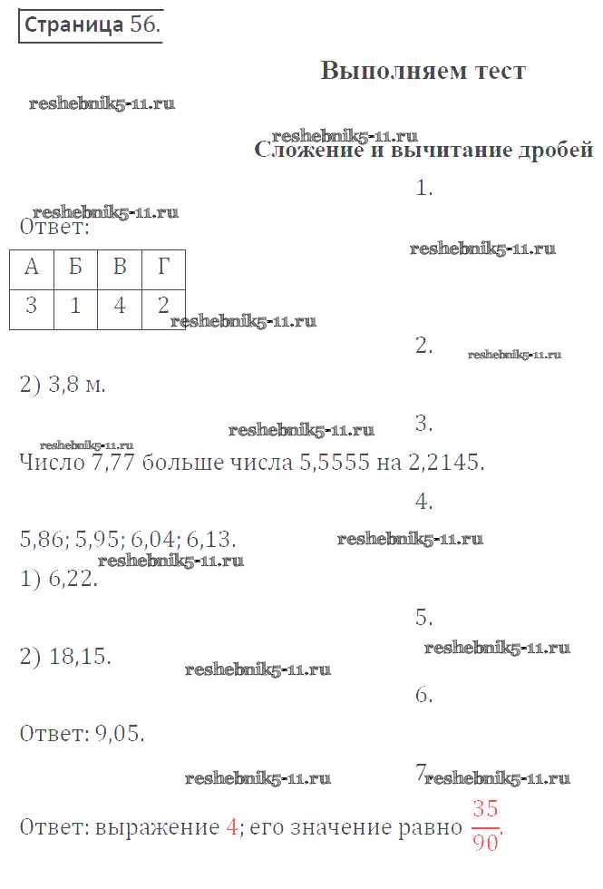 Готовая домашняя работа с ответами по Математике за 6 класс Бунимович, Кузнецова, Минаева Тетрадь-тренажер Сферы Просвещение 2013 ФГОС - Страницы 56