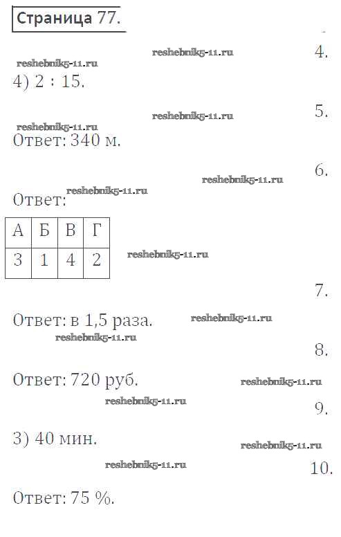 Готовая домашняя работа с ответами по Математике за 6 класс Бунимович, Кузнецова, Минаева Тетрадь-тренажер Сферы Просвещение 2013 ФГОС - Страницы 77