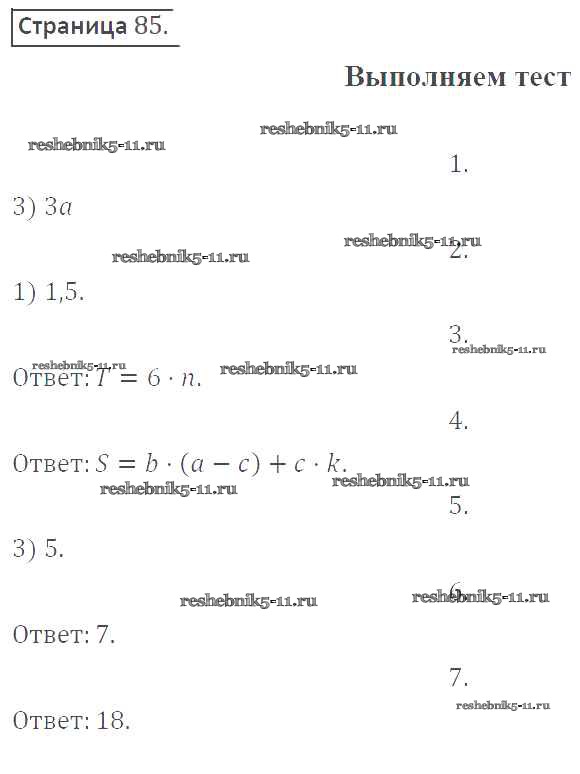 Готовая домашняя работа с ответами по Математике за 6 класс Бунимович, Кузнецова, Минаева Тетрадь-тренажер Сферы Просвещение 2013 ФГОС - Страницы 85